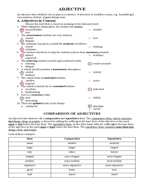 • Ignoring Context: The meaning of an adjective can sometimes change depending on the context. Always consider the surrounding words and the overall meaning of the sentence to ensure you’re using the adjective correctly.