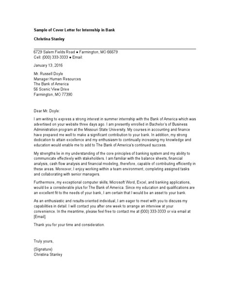 Bank Internship Application Letter Guide
