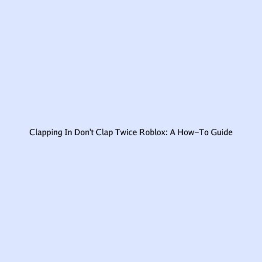 Clapping in Don’t Clap Twice Roblox: A How-To Guide