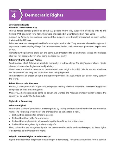 Hey there, future political scientists! Ready to dive into the awesome world of democratic rights ? This is a super important topic, especially for you guys in Class 9, because it lays the groundwork for understanding how governments work and how you can have your say in shaping society. We’re going to break down what democratic rights are all about, why they matter, and how they protect you. So, grab your notebooks, and let’s get started on this exciting journey! We’ll be exploring the fundamental rights that every citizen in a democracy should have, covering everything from the right to freedom of speech to the right to participate in elections. You’ll learn how these rights are enshrined in constitutions, protected by laws, and upheld by the judiciary. Plus, we’ll look at the importance of these rights in everyday life and how they contribute to a just and equitable society. Understanding these concepts will not only help you ace your exams but also empower you to become active and informed citizens. We’ll be using real-world examples and case studies to make things interesting and relatable, so you can see how these rights play out in the real world. Get ready to explore the different types of rights, like the right to equality, freedom, and the right against exploitation. We’ll also examine the role of the state in safeguarding these rights and what happens when they are violated. This is a crucial area of study because it forms the basis of a just and fair society where everyone’s voice matters. We’ll also touch upon the responsibilities that come with these rights. It’s not just about what you can claim; it’s also about what you can contribute to society. Think of it as a guide to becoming a responsible and engaged citizen. Understanding democratic rights is the first step towards creating a more just and equitable society for everyone. So, let’s get started.