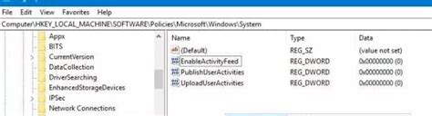3. Create a New DWORD Value: Right-click in the right pane of the System key, select “New,” and then click “DWORD (32-bit) Value.” Name the new value EnableActivityFeed . Double click on EnableActivityFeed and set its value to 0 . A DWORD (32-bit) Value is a type of data entry used in the Windows Registry to store configuration settings. DWORD stands for