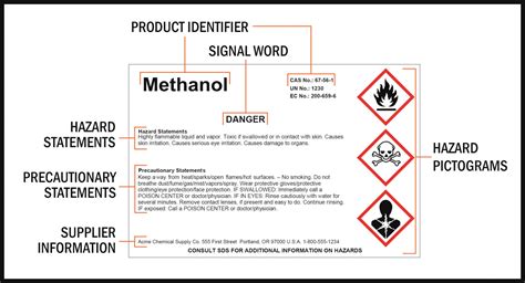 The purpose of these labels is to provide immediate warning and guidance to employees. The hazard warnings alert workers to the potential dangers of the chemical, while the identity of the chemical allows them to quickly find the corresponding SDS for more detailed information. The labels must also include pictograms, which are standardized symbols that represent specific hazard categories, such as flammability, toxicity, or corrosivity. These pictograms provide a quick visual cue, especially helpful for those who may not be fluent in English.