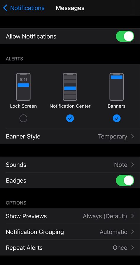 • Show Previews: This is a crucial setting for privacy. It controls whether the content of the notification is displayed on the lock screen, in the Notification Center, and as banners. You have three options: