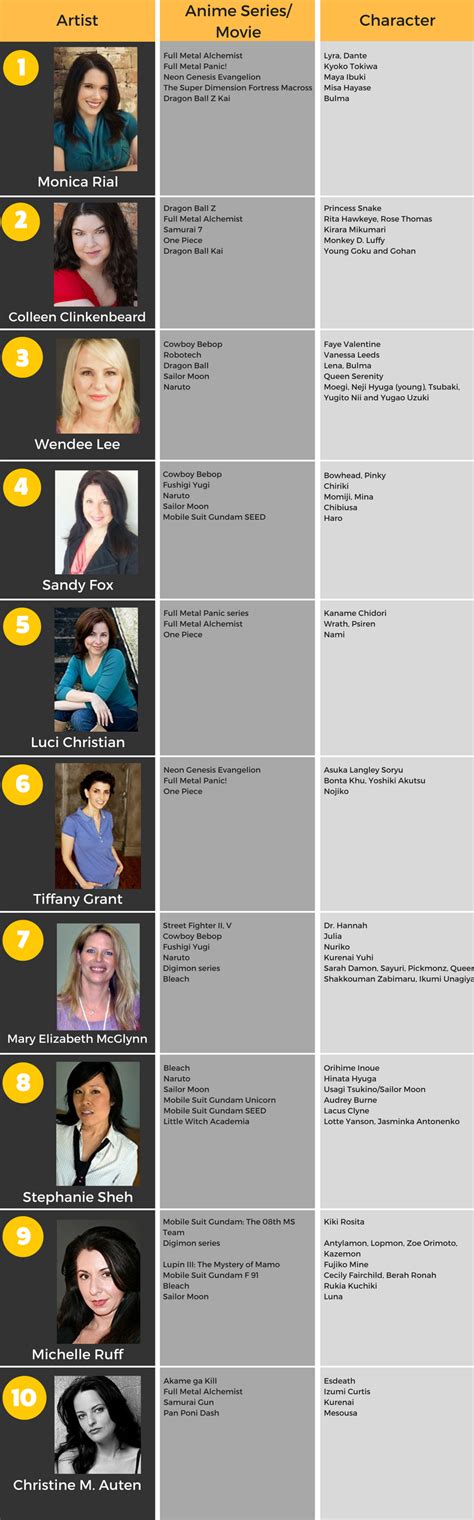 These are just a few examples of the incredibly talented women who have shaped the world of anime voice acting. These voice actresses have brought joy, excitement, and unforgettable memories to anime fans worldwide. Their voices are not just sounds; they are part of the story, shaping the characters we have come to love. They’ve set the bar high for future generations of voice actors. They’ve shown us what’s possible when talent meets dedication, and their contributions will continue to inspire and entertain for years to come. These voice actresses are true treasures, and we’re so lucky to have their talent grace the world of anime .