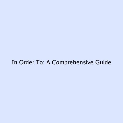 In Order To: A Comprehensive Guide