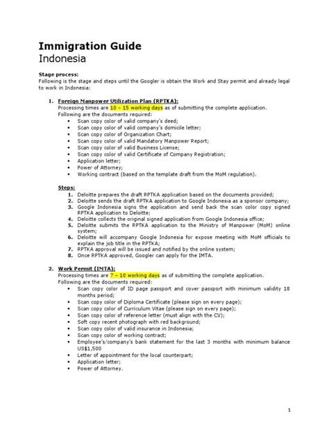 Alright, let’s shift gears and talk about the permits needed if you’re planning to work or do business in Indonesia . This is a more involved process, guys, and requires careful planning and adherence to regulations. For those seeking employment, the primary route involves obtaining a work permit (Izin Menggunakan Tenaga Kerja Asing - IMTA) . This permit is usually sponsored by an Indonesian company that wishes to hire you. The company itself has to justify hiring a foreigner, often proving that the skill set is not readily available locally. Once the IMTA is approved, it paves the way for a Limited Stay Visa (VITAS) , which is then converted into a Limited Stay Permit (ITAS) upon arrival in Indonesia. The ITAS is your actual work and residence permit and needs regular renewal. The documentation for these visas is usually extensive, including your passport, photos, a sponsorship letter from the employer, the IMTA, educational certificates, curriculum vitae (CV), and sometimes a police clearance certificate. For entrepreneurs or investors, Indonesia offers specific investment visas . These are often tied to setting up a business or investing a significant amount of capital in the country, as stipulated by the Investment Coordinating Board (BKPM). The process typically involves registering your business, securing necessary permits, and demonstrating proof of investment. It’s essential to work closely with your sponsoring company or a reputable immigration consultant to navigate these complex requirements. Mistakes can be costly and lead to significant delays or rejections. Always ensure all your documents are authentic and accurately translated if necessary. The Indonesian government is keen on attracting skilled foreign talent and investment, but they also prioritize local employment and economic stability, so understanding this balance is key to a successful application.