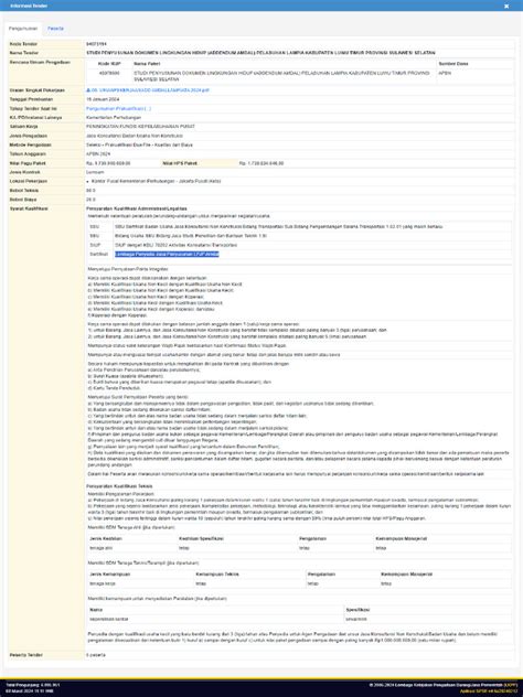 Informasi lelang di LPSE hari ini itu sangat detail. Kamu nggak cuma dikasih tahu nama proyeknya apa, tapi juga spesifikasi teknis barang/jasa yang dibutuhkan , nilai pagu anggaran , sumber dana , jadwal pelaksanaan lelang (mulai dari pengumuman, aanwijzing/penjelasan, pemasukan penawaran, sampai pembukaan penawaran), dan dokumen kualifikasi yang harus dipenuhi. Penting banget untuk baca semua detail ini dengan cermat. Salah satu kesalahan paling umum yang bikin peserta gugur adalah ketidaklengkapan dokumen atau ketidaksesuaian penawaran dengan spesifikasi yang diminta.