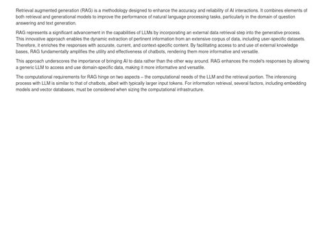 RAG’s significance extends beyond just accuracy. It also improves the relevance and specificity of AI-generated content. By retrieving contextually relevant information, the AI can tailor its responses to the specific needs of the user. For example, if you’re asking about a particular product, the AI can pull in detailed specifications, customer reviews, and even competitor comparisons to provide a comprehensive answer. This level of detail and personalization is something that traditional LLMs often struggle to achieve. Furthermore, RAG enhances transparency by providing citations and references for the information used in its responses, making it easier to verify the accuracy and reliability of the AI-generated content. This builds trust and confidence in the AI’s capabilities, encouraging wider adoption and utilization across the enterprise. Essentially, RAG transforms LLMs from general-purpose language models into powerful tools for knowledge management and decision support, enabling businesses to leverage the full potential of AI to drive innovation and growth.