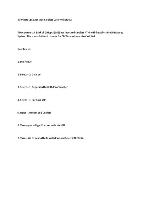 • ATM Compatibility: Verify that the ATM supports cardless withdrawals. Not all machines have this feature.
