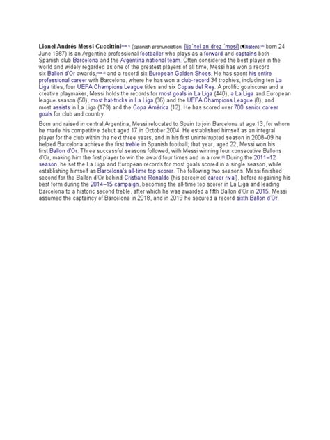 - FC Barcelona Legend: Messi spent the majority of his professional career with FC Barcelona, where he won numerous titles and broke countless records.