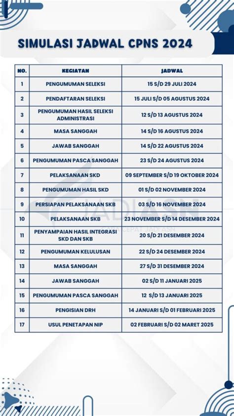 Bocoran jadwal Kemenkumham CPNS 2024 yang beredar di berbagai forum CPNS biasanya merujuk pada rencana umum pemerintah terkait rekrutmen ASN. Pemerintah memang punya target untuk melakukan rekrutmen CASN (Calon Aparatur Sipil Negara) di tahun 2024 ini. Kemenkumham sebagai salah satu kementerian terbesar dan terbanyak kebutuhannya, pasti akan menjadi salah satu prioritas. Jadi, kemungkinan besar pendaftarannya akan segera dibuka. Pantau terus website resmi Kemenkumham (www.kemenkumham.go.id) dan portal CASN BKN (casn.bkn.go.id) ya, guys. Jangan sampai telat info!