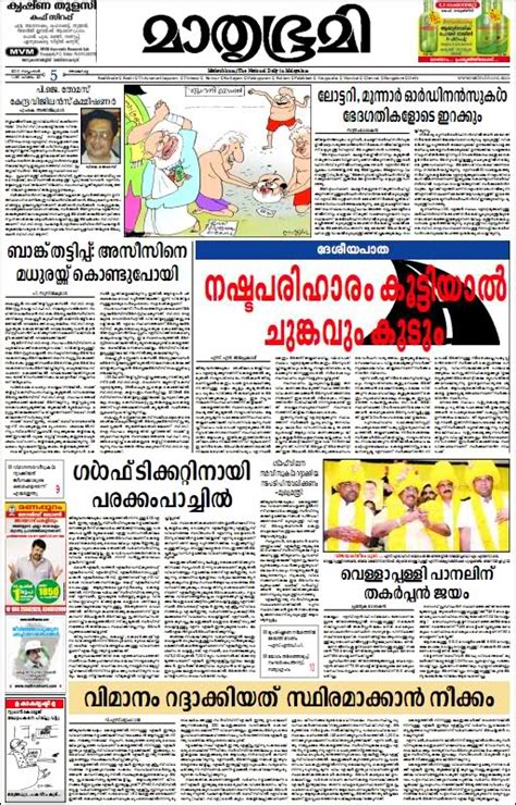 Mathrubhumi (മാതൃഭൂമി): Known for its in-depth coverage of political and social issues. Malayala Manorama (മലയാള മനോരമ): Renowned for its comprehensive coverage of news and current affairs. Madhyamam (മാധ്യമം): Recognized for its focus on social justice and marginalized communities.