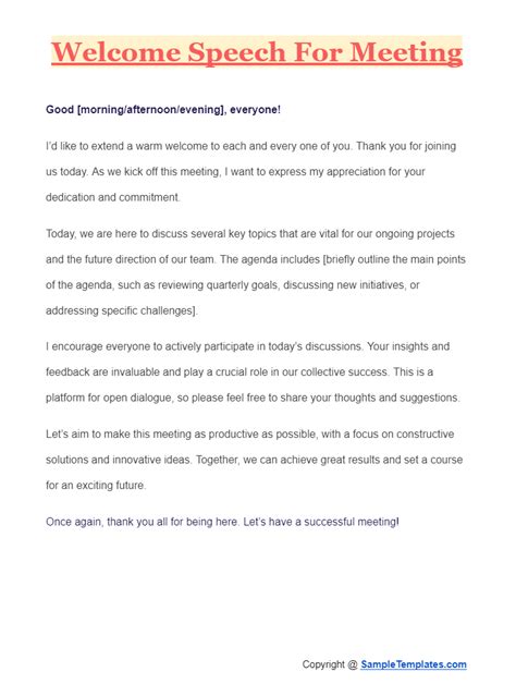 Think about it: the first few minutes of a meeting are crucial. They set the stage for everything that follows. A well-delivered welcome can foster a positive atmosphere, encourage participation, and ensure everyone feels valued. On the flip side, a weak or awkward opening can leave people feeling disengaged before you’ve even gotten to the agenda. So, mastering the art of the welcome remark isn’t just a nice-to-have; it’s a strategic tool for effective communication and collaboration. Whether you’re leading a team meeting, a client presentation, a brainstorming session, or a casual get-together, having a few go-to examples and a solid understanding of what makes a great welcome is essential. We’ll explore different scenarios, offer practical tips, and provide you with a treasure trove of examples to get you inspired. Get ready to nail your next meeting opening – you got this!