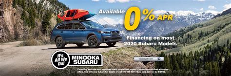 • Q: Does Minooka Subaru offer financing? A: Yes, they offer various financing options to help you with your purchase.