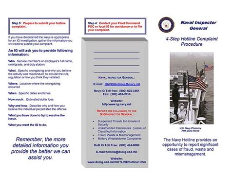 To make your experience with the Naval Inspector General Hotline as effective as possible, keep these tips in mind, guys. First and foremost, be factual and specific . Avoid vague accusations or emotional outbursts. Stick to what you know, what you saw, or what you directly experienced. Provide names, dates, times, locations, and any other concrete details that can help investigators. Second, understand the scope . The IG Hotline is for serious matters like fraud, waste, abuse, mismanagement, and significant ethical violations. It’s not the place for everyday grievances, personal disputes, or issues that can be handled by your immediate chain of command or local HR office. Reporting something outside the IG’s purview will likely result in it being dismissed or referred elsewhere, causing delays. Third, maintain confidentiality if needed . If you’re concerned about retaliation, clearly state your desire for confidentiality when you file your report. The IG’s office has mechanisms to protect whistleblowers, but it’s crucial to communicate your concerns upfront. Fourth, keep your tracking number safe . This is your lifeline to monitoring your report’s progress. Treat it like a password or account number. Finally, be patient and realistic . Investigations take time, and the outcomes might not always be exactly what you expect. The goal of the IG system is to ensure the integrity and effectiveness of the Navy, and your report contributes to that larger objective. By following these guidelines, you significantly increase the likelihood that your report will be processed efficiently and effectively, contributing to a better Navy for all. Remember, your responsible use of the hotline and its tracking system is vital for its success.
