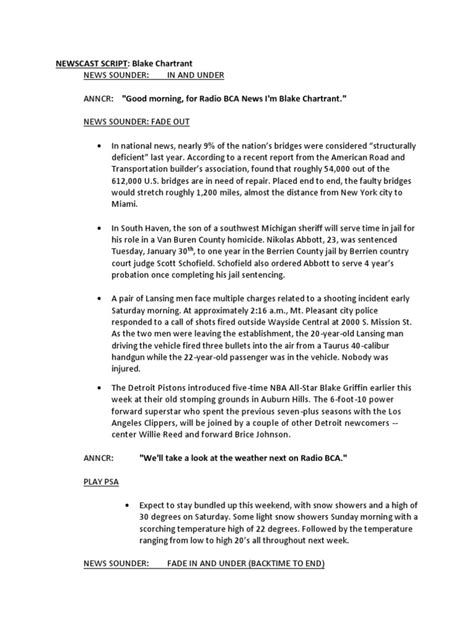 Hey everyone! Ever found yourself staring at a blank page, trying to craft the perfect newscast script? You know, that killer opening, the smooth transitions, the impactful closing? It can be a real head-scratcher, right? Well, fret no more, guys! Today, we’re diving deep into the world of newscast script examples , giving you a treasure trove of ideas and structures that will make your writing process a breeze. Whether you’re a seasoned pro looking for a fresh perspective or a newbie just starting out, these examples are designed to spark your creativity and help you produce engaging, informative, and totally captivating newscasts. We’ll break down different types of scripts, explore common elements, and even offer some tips and tricks to elevate your writing game. So, grab your coffee, get comfy, and let’s get scripting!
