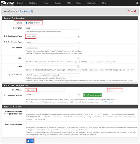 Let’s really zero in on the IP address and subnet mask for your pfSense LAN interface, because this is foundational, guys. When you’re configuring the LAN interface under Interfaces -> LAN , the first two critical fields are IPv4 Address and Subnet Mask . The IPv4 Address is essentially the identity of your pfSense box on your local network. It’s the address that all your other devices will use as their default gateway . Think of it as the main entrance to your internal network. As mentioned, common choices are 192.168.1.1 , 192.168.0.1 , or 10.0.0.1 . The key is to pick an IP address that falls within a private IP range and, crucially, does not conflict with any other network you might be connecting to. If your ISP gives you a modem/router combo that already uses 192.168.1.1 for its own LAN, you’ll want to pick a different IP for your pfSense LAN to avoid an IP address conflict. You might choose 192.168.2.1 or 10.10.10.1 in that scenario. Now, the Subnet Mask is just as important. It tells pfSense (and all your other devices) which part of the IP address identifies the network and which part identifies the host (your specific device). A 255.255.255.0 subnet mask (often written as /24 in CIDR notation) means that the first three octets (like 192.168.1 ) define the network, and the last octet defines the specific device on that network. This allows for 254 unique IP addresses ( 192.168.1.1 through 192.168.1.254 ). If you used a 255.255.0.0 mask ( /16 ), the first two octets would define the network, allowing for a much larger range of IP addresses (over 65,000!). For most home users, /24 is perfectly adequate. If you have a small business with many devices or plan on using VLANs extensively, you might consider a larger subnet. The critical thing is consistency. All devices on your LAN should have IP addresses that fall within the same network range defined by your pfSense LAN IP and subnet mask. This is why enabling the DHCP server is so common – it handles this automatically. However, if you need to assign static IPs to certain devices (like servers or printers), you’ll need to manually configure them with an IP address within this range and the same subnet mask. Misconfiguring either the IP address or the subnet mask can lead to devices not being able to communicate with the pfSense box, or worse, not being able to reach the internet at all. So, take your time, double-check your choices, and ensure they make sense for your network topology.