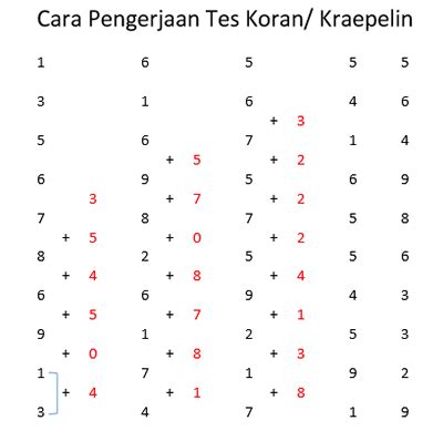 Sebenarnya, Tes Pauli dan Tes Kraepelin ini seringkali merujuk pada tes yang sama, yaitu tes menjumlahkan angka vertikal dalam waktu tertentu. Jadi, kalau kamu nemu istilah Tes Kraepelin , anggap aja itu sama kayak Tes Pauli. Tujuannya juga sama: mengukur ketelitian, kecepatan, ketahanan, dan konsistensi kerja. Fokusnya adalah melihat bagaimana performa kamu saat mengerjakan tugas yang monoton dalam jangka waktu yang ditetapkan.