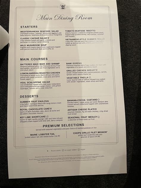 Royal Caribbean Dining: A Menu Guide