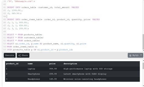 • The my_table_insert trigger executes the increment_id() function before each insert on the my_table table.