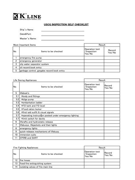 Alright, let’s get down to the brass tacks. What exactly does the USCG COC inspection checklist scrutinize? It’s a comprehensive review, guys, covering almost every inch of your vessel and its operations. We’re talking about several critical categories that inspectors will be zeroing in on. First up, we have Hull and Structure . This is the very foundation of your vessel. Inspectors will be looking for any signs of corrosion, damage, or structural weaknesses. They’ll check the integrity of the hull, decks, and superstructure. Think about it – a compromised hull is a recipe for disaster. Next, Machinery and Systems are a huge focus. This includes your main engines, generators, steering systems, and propulsion. They need to be in good working order, properly maintained, and free from leaks or excessive wear. They’ll check fuel lines, exhaust systems, and cooling systems too. It’s all about ensuring your vessel can operate reliably and safely. Then there’s Safety Equipment . This is probably what most people think of first. We’re talking about life jackets, life rafts, immersion suits, fire extinguishers, emergency position-indicating radio beacons (EPIRBs), flares, first-aid kits, and so much more. Everything needs to be readily accessible, in good condition, and within its service dates. Don’t even get me started on expired flares, guys; that’s a quick way to fail. Navigation and Communication Equipment are also vital. This includes radar, GPS, charts, compasses, VHF radios, and any other signaling devices. They need to be functioning correctly and calibrated. Your ability to navigate safely and communicate in emergencies is non-negotiable. We also need to consider Pollution Prevention Equipment . The Coast Guard is serious about protecting our waters. This means checking your oil spill response equipment, sewage treatment systems, and garbage management plans. Compliance here is key to preventing environmental damage. Finally, Documentation and Records are crucial. This covers your vessel’s registration, manning documents, maintenance logs, and any required certifications. Inspectors need to see that you’ve been diligent in keeping your records up-to-date and that your crew is properly qualified. Each of these areas is interconnected, contributing to the overall safety and seaworthiness of your vessel. So, when you’re prepping, make sure you have a checklist that covers all these points in detail. Don’t just glance over them; really dig into each one. It’s the thoroughness of your preparation that will make all the difference.