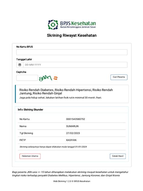 Furthermore, the Web Skrining BPJS Kesehatan plays a crucial role in promoting health awareness and education among BPJS Kesehatan participants. By providing personalized health insights and recommendations, it empowers individuals to make informed decisions about their health and take proactive steps to improve their well-being. This can lead to healthier lifestyles, such as adopting a balanced diet, engaging in regular physical activity, and avoiding tobacco and excessive alcohol consumption. In addition to its direct benefits, web screening also serves as a valuable tool for public health surveillance. The data collected through the web screening portal can be used to monitor the prevalence of health risks and diseases in the population and to identify areas where public health interventions are needed. This information can help policymakers and healthcare providers to develop targeted strategies to address the most pressing health challenges facing the community.
