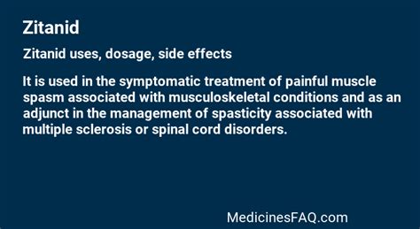 Hey everyone! Let’s dive into the world of Zitanid 2mg dosage . If you’re here, you’re likely looking for clear, straightforward info on how to take this medication. We’re going to break down everything you need to know, making it super easy to understand, so you can feel confident and informed. Remember, though, this isn’t a substitute for professional medical advice, so always chat with your doctor or pharmacist first. They know your specific health situation best!